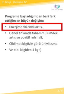 Gruplarımızda Tiroid, Hashimoto, Lupus, Romatoid Artrit, Fibromiyalji, Egzama gibi kronik rahatsızlığı olanlar vardı. 2. Haftaya doğru ağrılarının azaldığını, enerjilerinin arttığını ve uzun zaman sonra bu kadar rahat ettiklerini belirttiler.